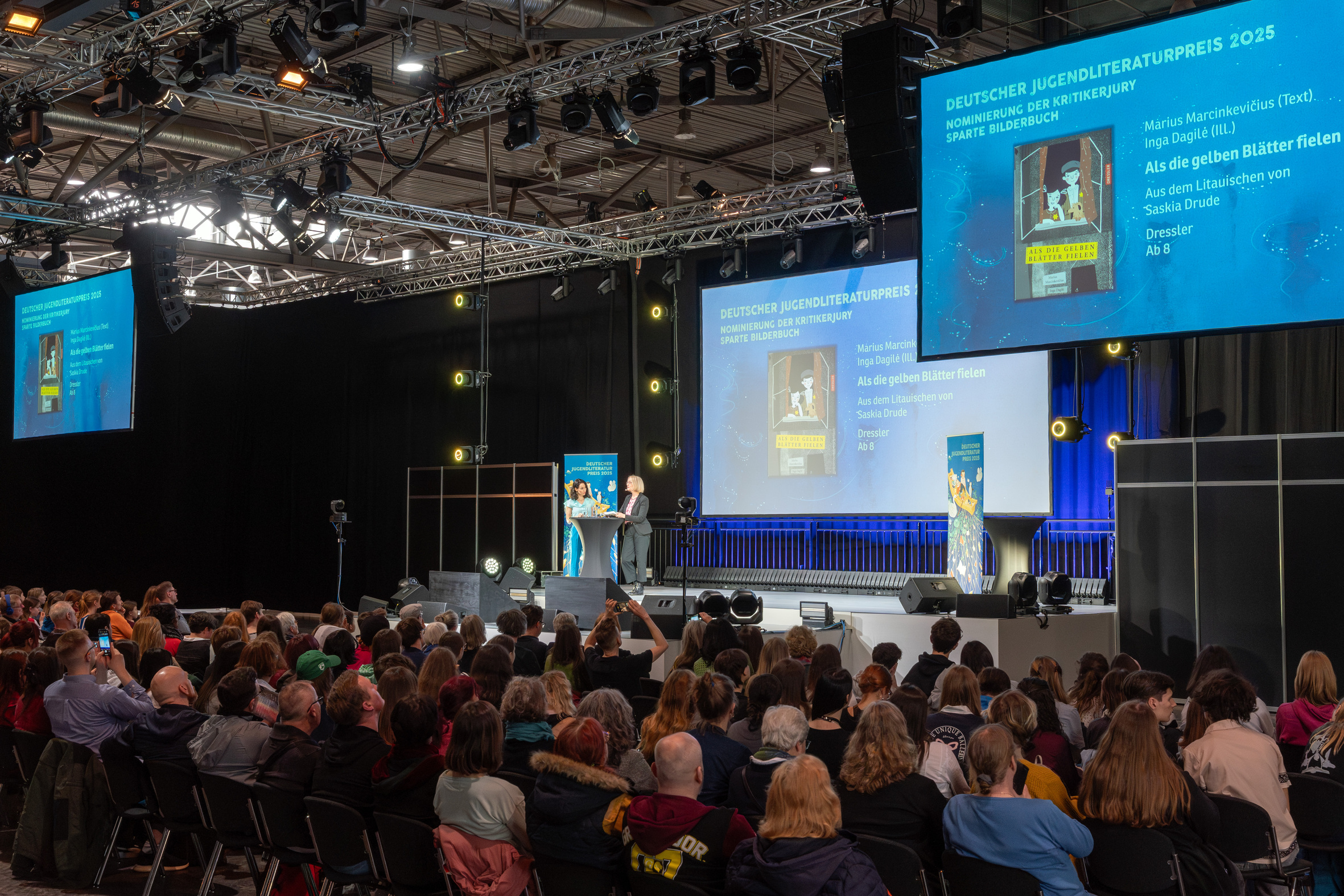 The award ceremony of the Leipzig Book Fair Prize will be recorded in its entirety by the TV service provider MediaPorta and broadcast as a mixed signal (4 cameras + crane). The event will also be streamed.