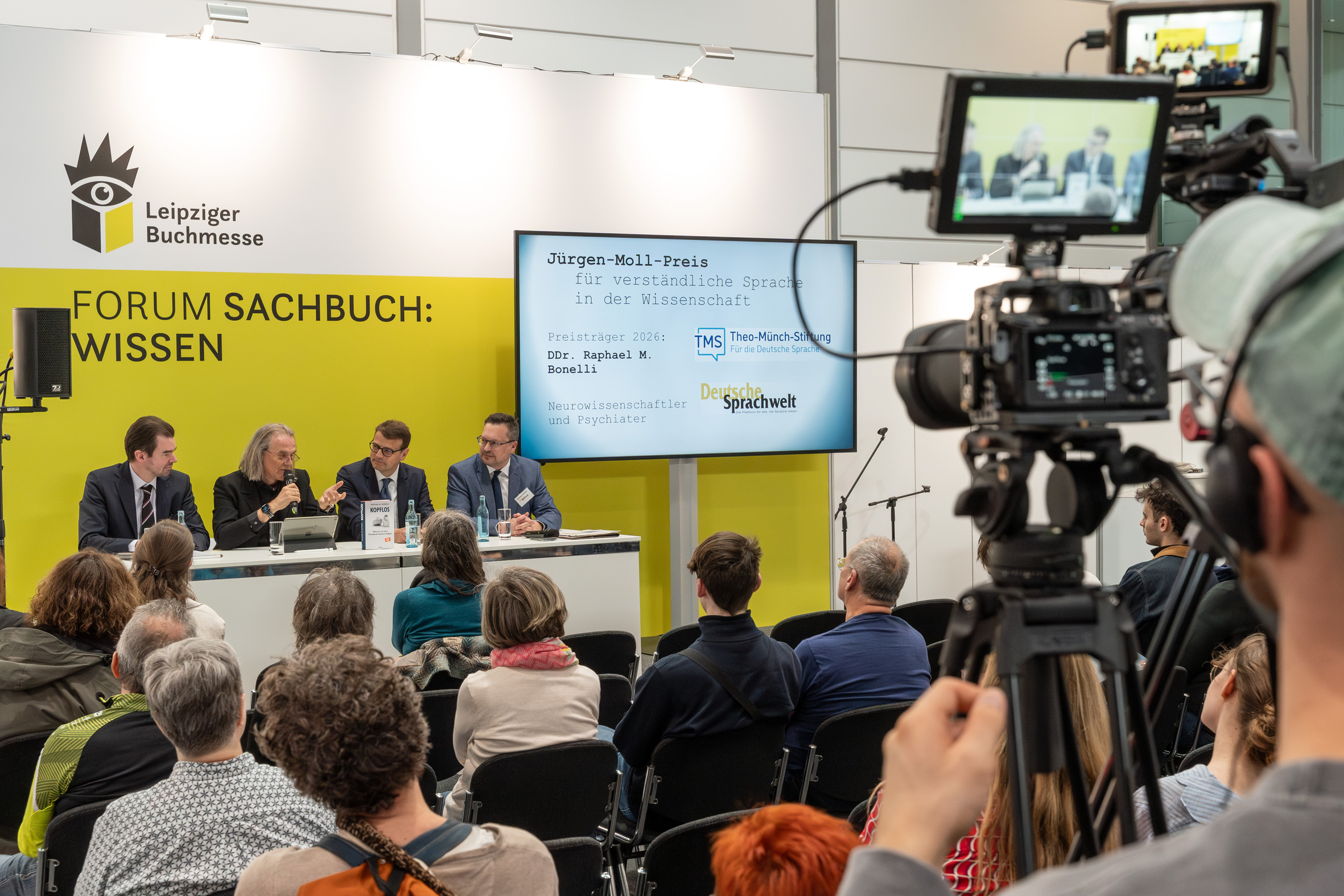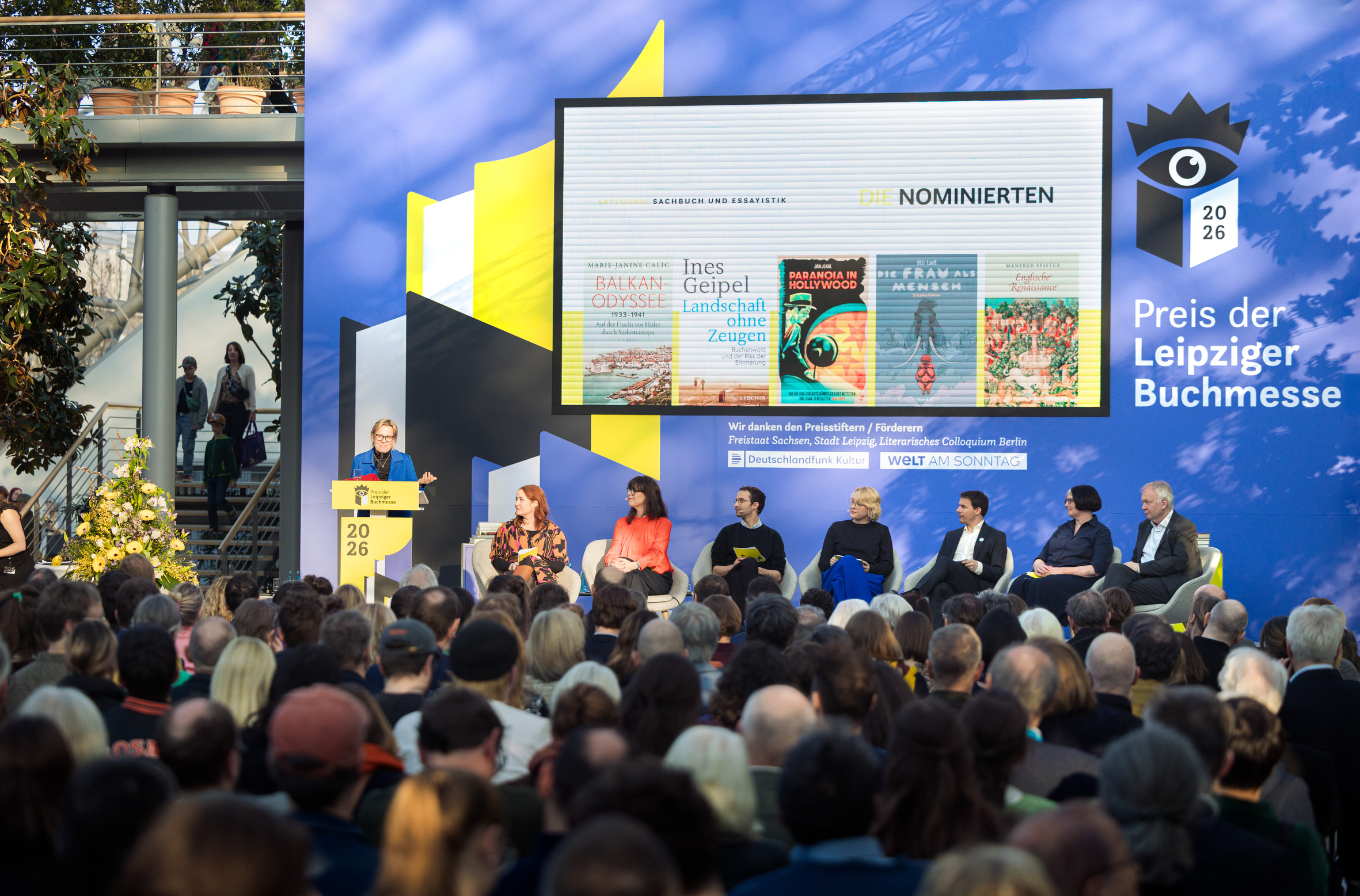 The award ceremony of the Leipzig Book Fair Prize will be recorded in its entirety by the TV service provider parq.media and broadcast as a mixed signal (4 cameras + crane). The event will also be streamed.